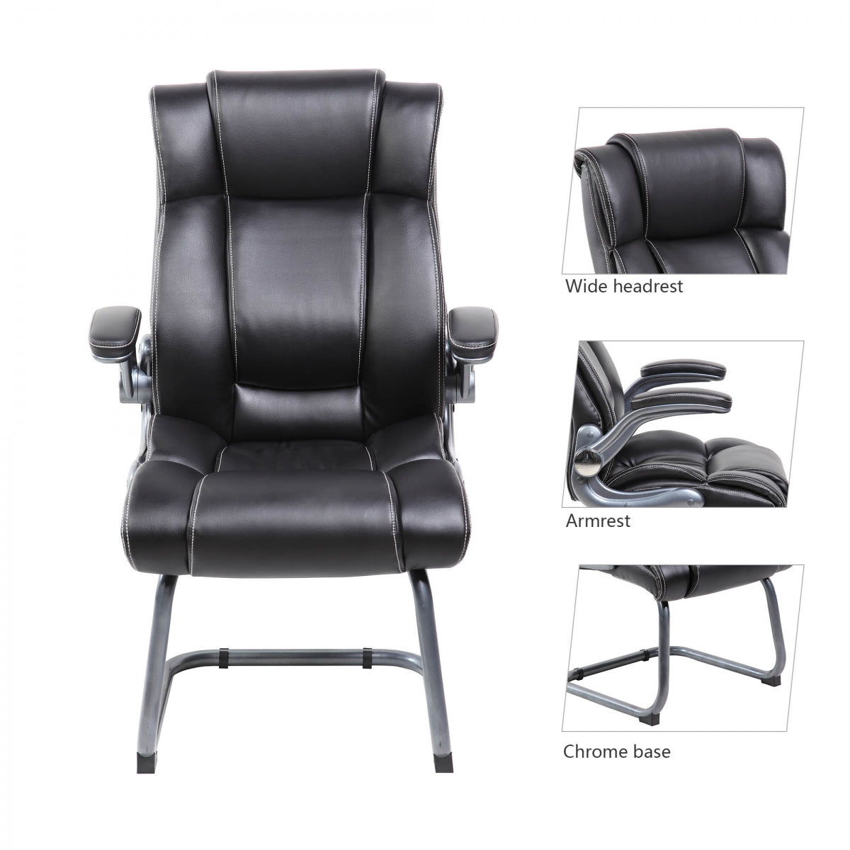 Features: Chrome Sleigh Base, movable armrests, Padded headrest